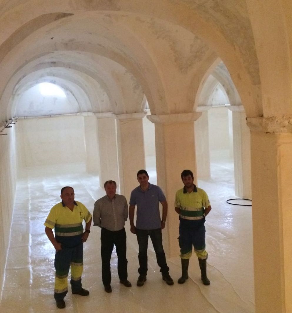 Estas tareas, llevadas a cabo por 3 trabajadores, se hacen anualmente y se ejecutan en tres fases; en una primera se realiza la limpieza hidromecánica para extraer los sólidos de las paredes y el suelo. Después se revisan y reparan, si es necesario, las válvulas, arquetas, cañerías y otros elementos del depósito, aprovechando que éste se encuentra vacío.