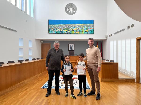 De entre los 8.200 trabajos presentados, 2 de Miajadas han sido seleccionados como finalistas, por lo que han recibido hoy como premio una tarjeta regalo para material deportivo por valor de 30€ cada uno