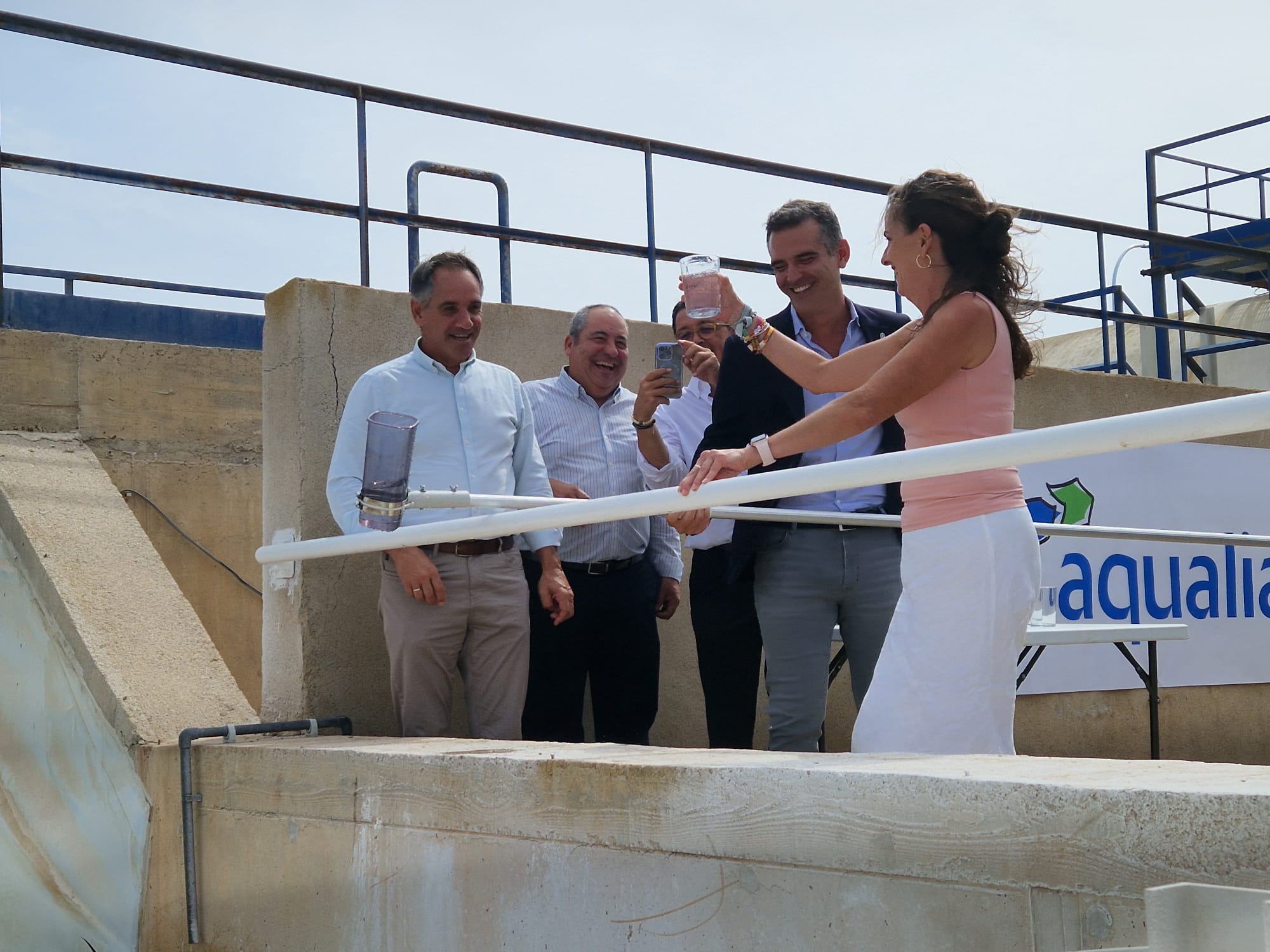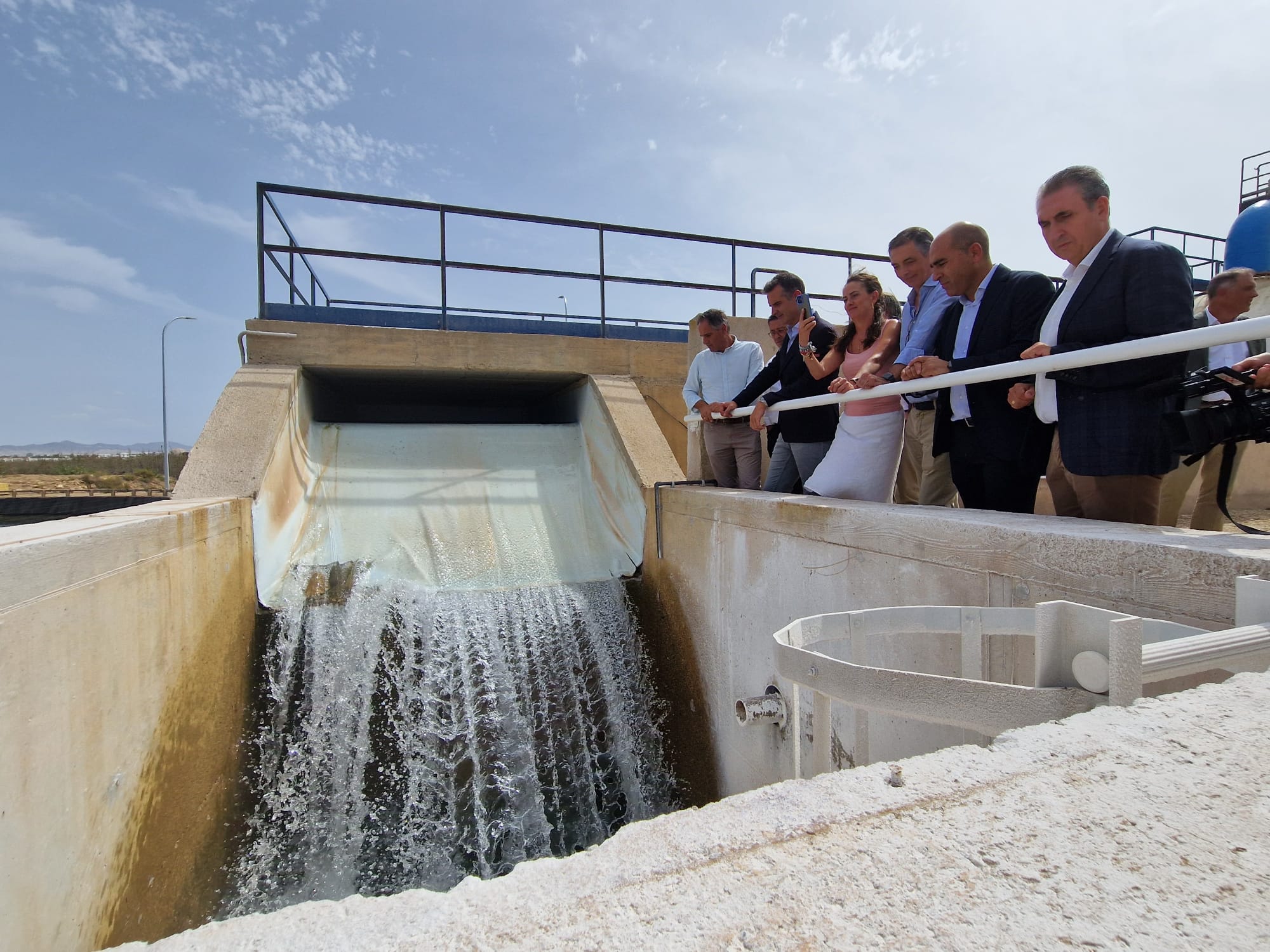Todos ellos han sido recibidos por el director de Aqualia en Andalucía, Higinio Martínez, el director de la Delegación de Almería, Jose Colomina, y el equipo de técnicos de la planta, que les han mostrado, a través de una visita guiada por la desaladora, el resultado de las obras de renovación llevadas a cabo por Servicios Hídricos. Esta visita ha culminado en el punto de salida del agua ya desalada a la balsa 1, anexa al edificio de la planta, donde hasta el 15 de septiembre van a desembocar 8.000 m3 al día y a partir de entonces esta cantidad aumentará hasta los 13.000 m3/día.